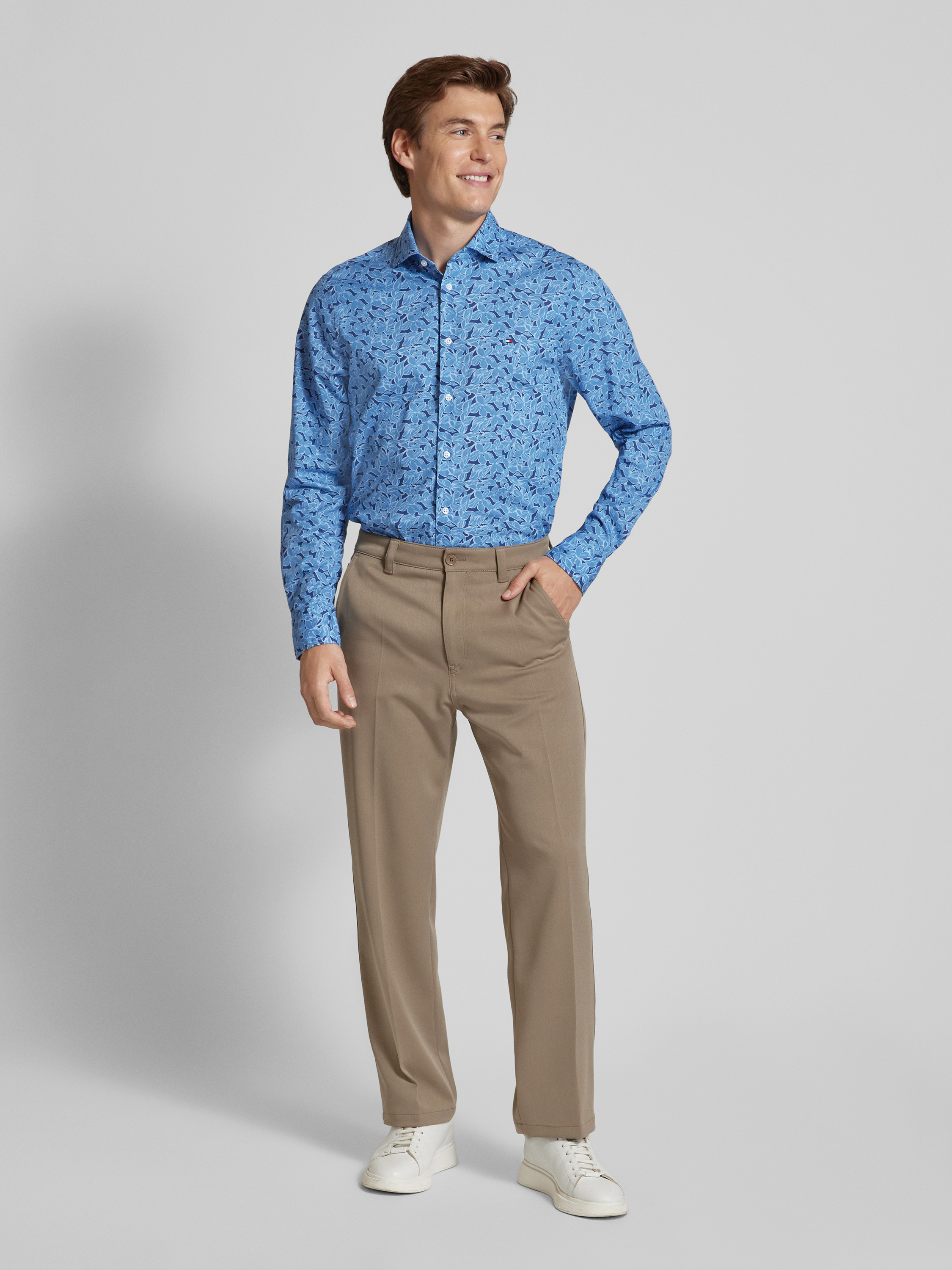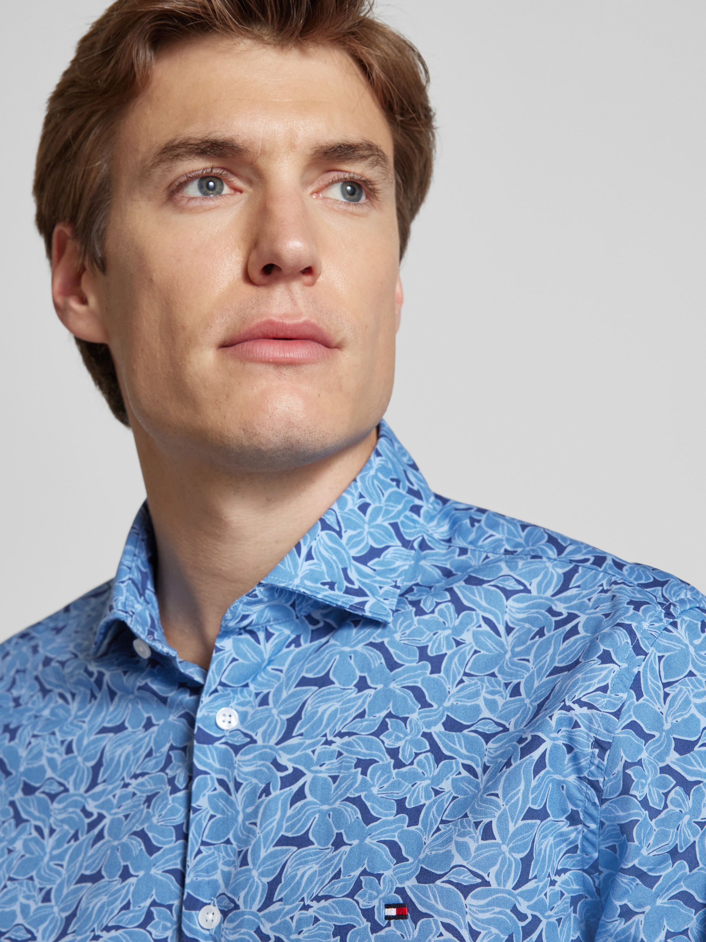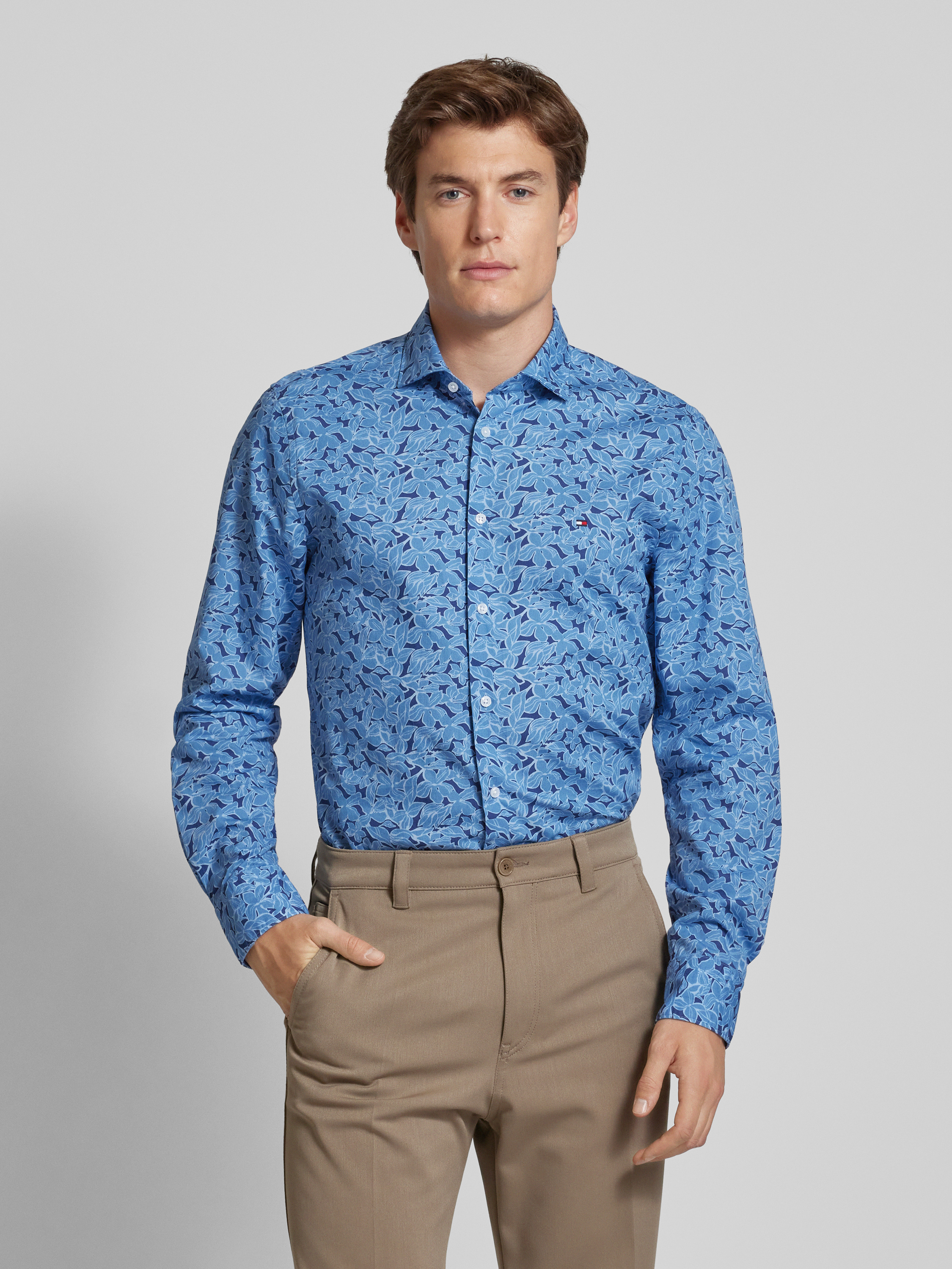 Das Slim Fit Business-Hemd 'Parker' von Tommy Hilfiger Tailored vereint Eleganz mit Komfort. Aus reiner Baumwolle gefertigt, sorgt es für ein angenehmes Tragegefühl, während der Kentkragen und die Sportmanschetten klassische Akzente setzen. Das dezente Logo-Stitching rundet das Design harmonisch ab.