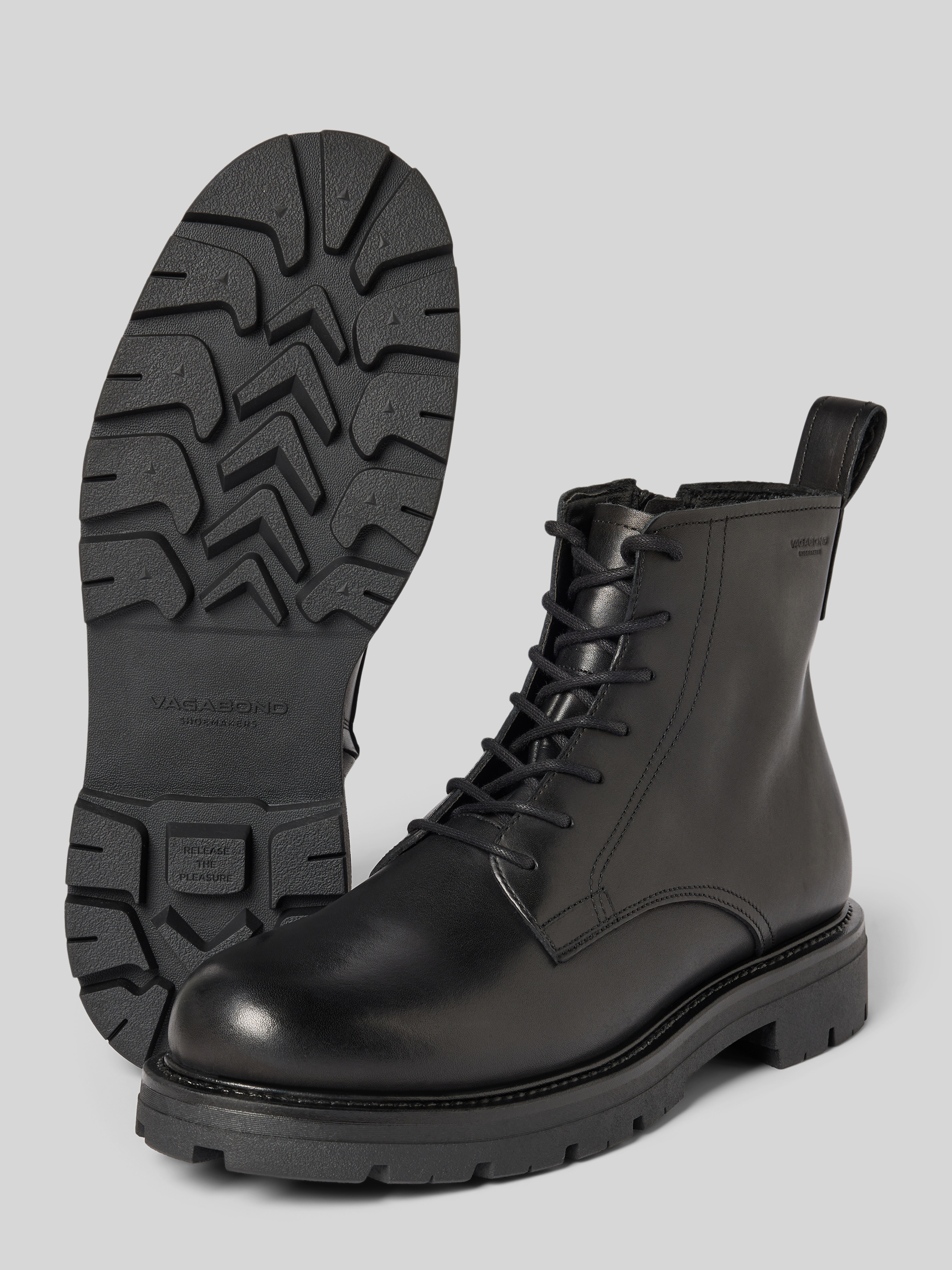 Die Herren Boots von Vagabond, Modell 'Cameron', zeigen sich in einer klaren, unifarbenen Optik und setzen auf eine abgerundete Schuhspitze. Echtes Leder sorgt für ein angenehmes Tragegefühl und unterstützt eine langlebige Nutzung im Alltag. Durch den Blockabsatz erhält man einen festen Stand, was das Gehen komfortabel gestaltet.