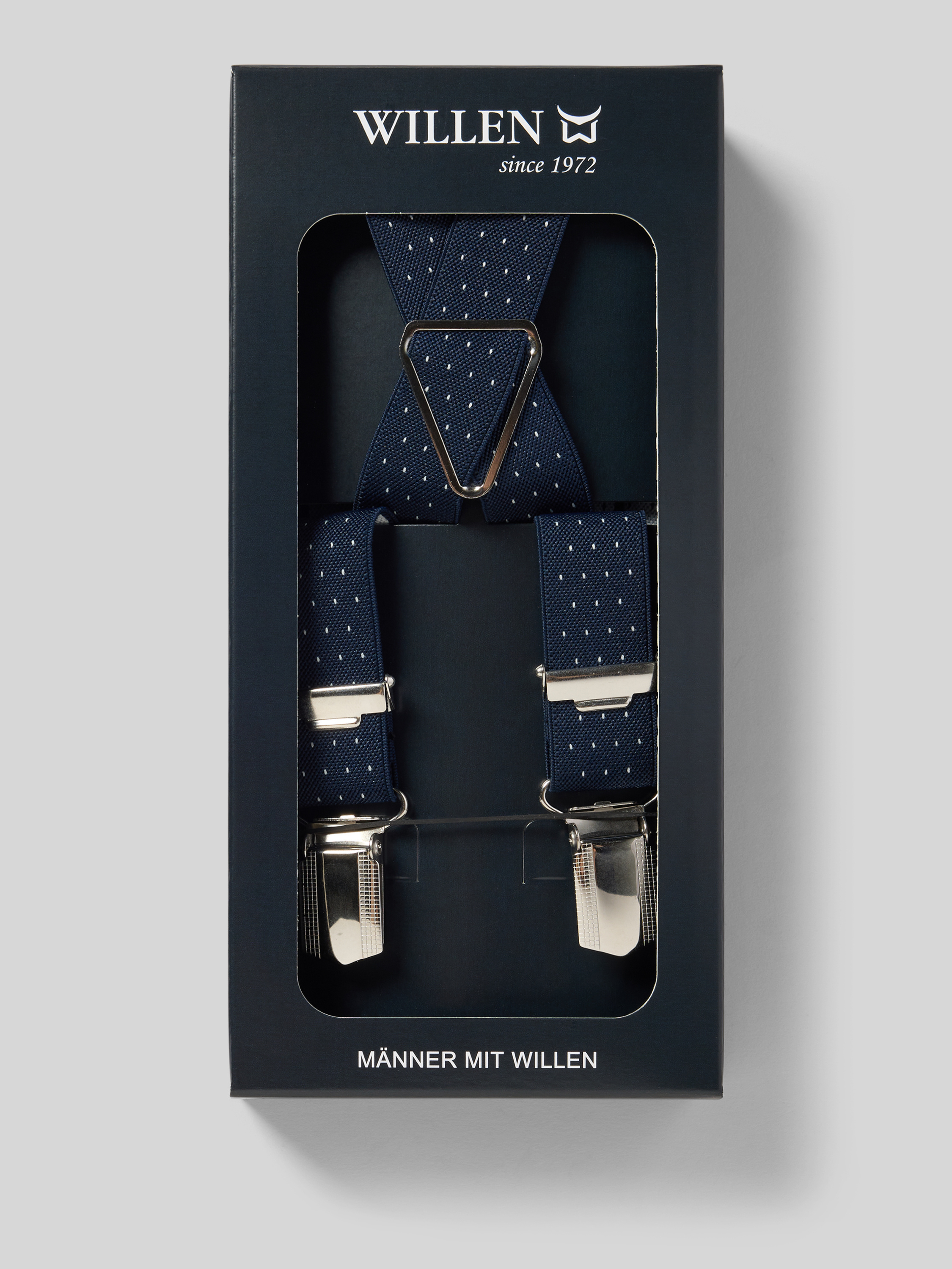 Die Herren Hosenträger von Willen präsentieren sich in markanter X-Form und lassen sich dank der verstellbaren Träger individuell anpassen. Der elastische Material-Mix sorgt dabei für angenehmen Tragekomfort im Alltag. Mit den robusten Metallclips sitzt die Hose zuverlässig, ohne dass etwas verrutscht.
