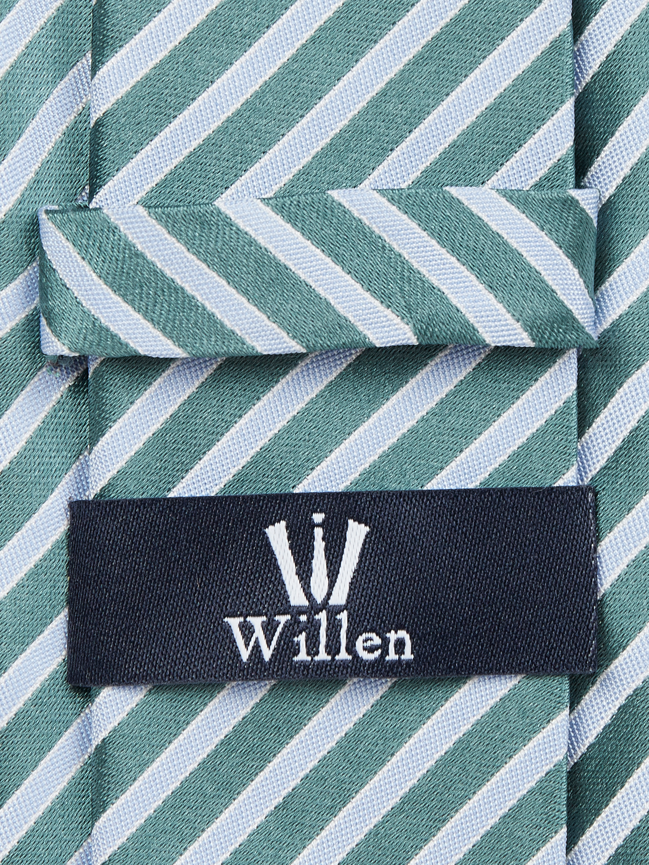 Die Krawatte von Willen ist aus reiner Seide gefertigt. Sie kommt in klassischer Form mit Streifenmuster.