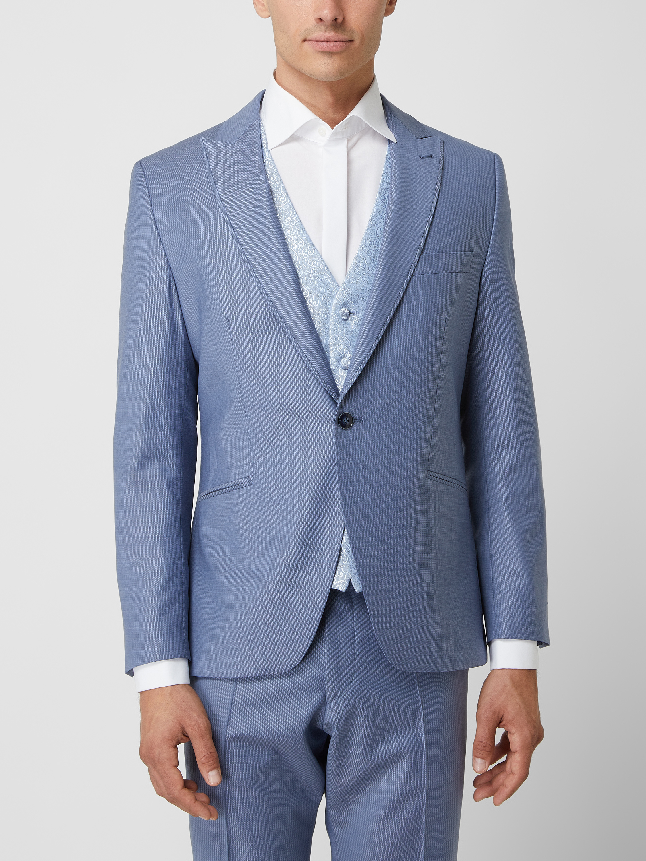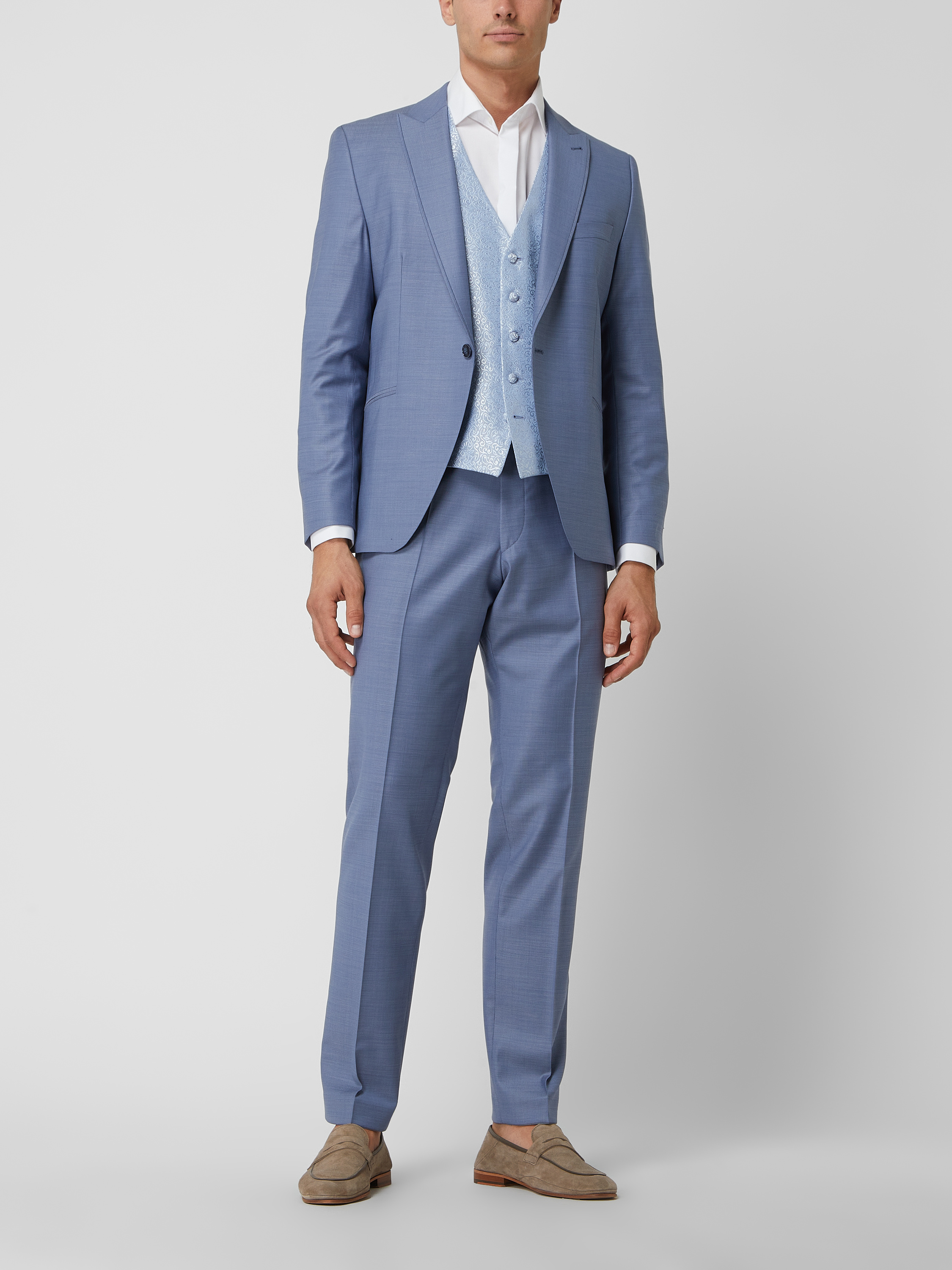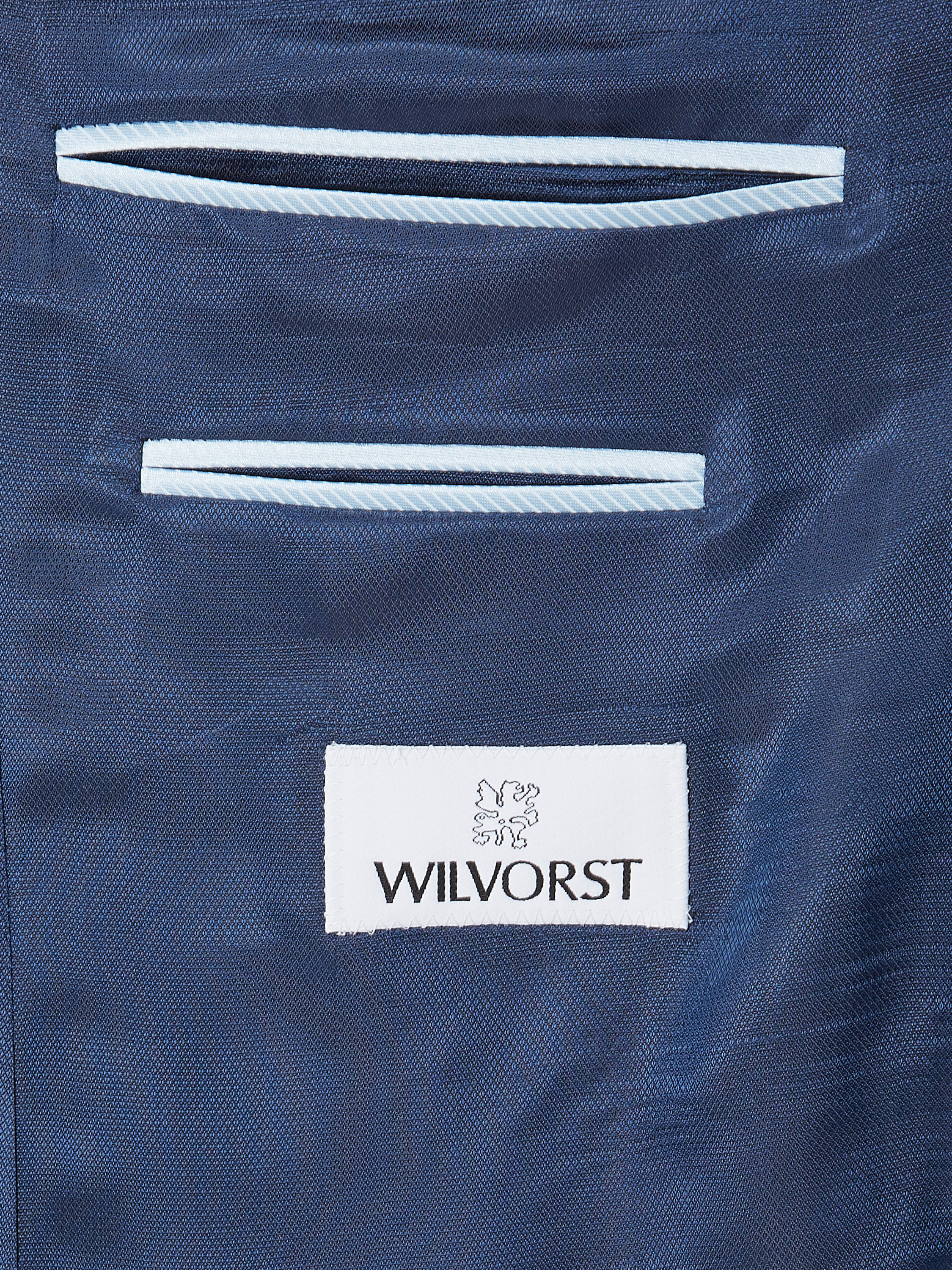 Das Herren-Sakko von WILVORST kombiniert zeitlose Eleganz mit einem komfortablen Woll-Elasthan-Mix, der Bewegungsfreiheit ermöglicht. Das feine Webmuster und das steigende Revers verleihen dem geraden Schnitt eine dezente Raffinesse. Paspeltaschen und Kissing Buttons runden das Design stilvoll ab.