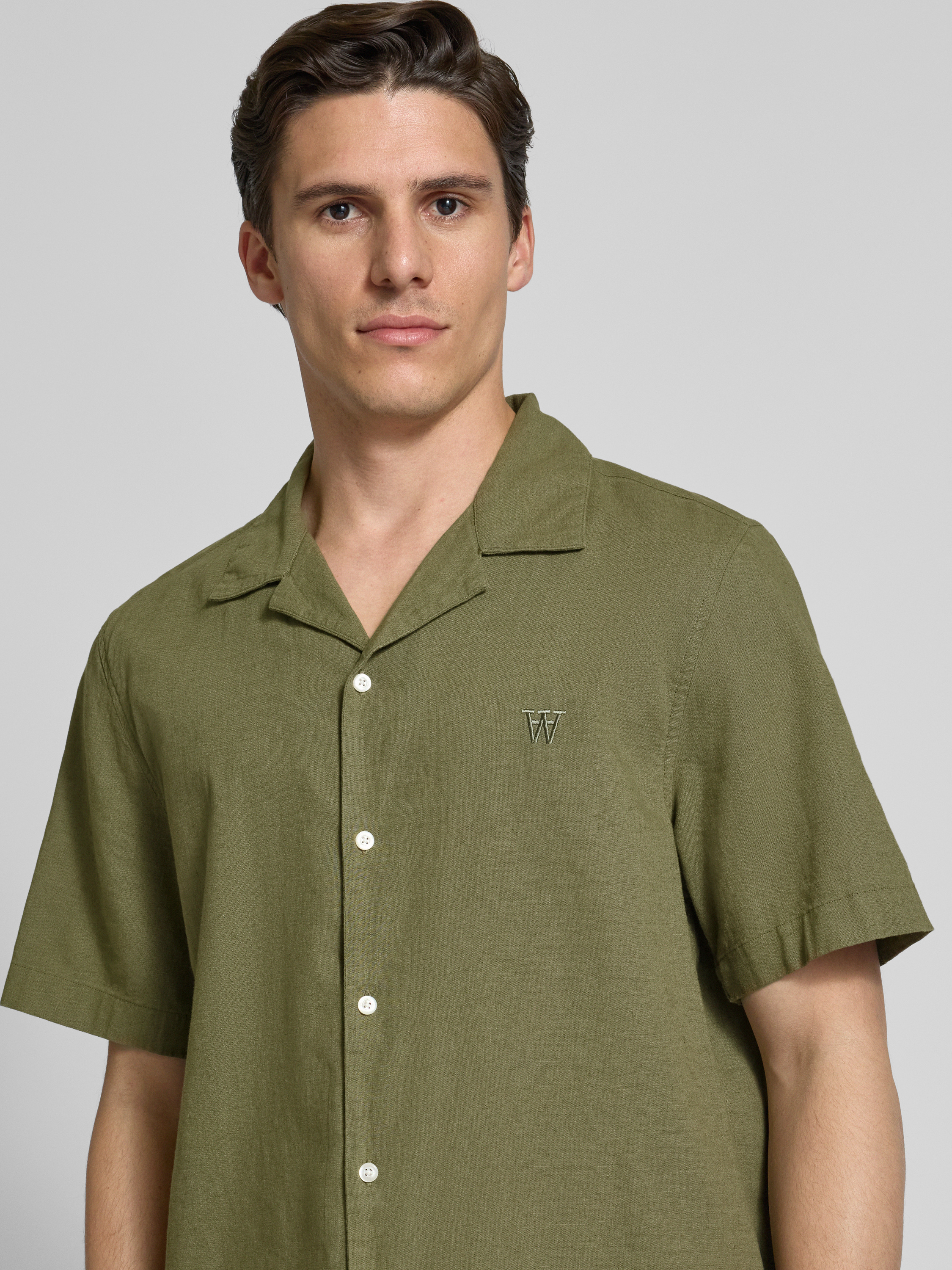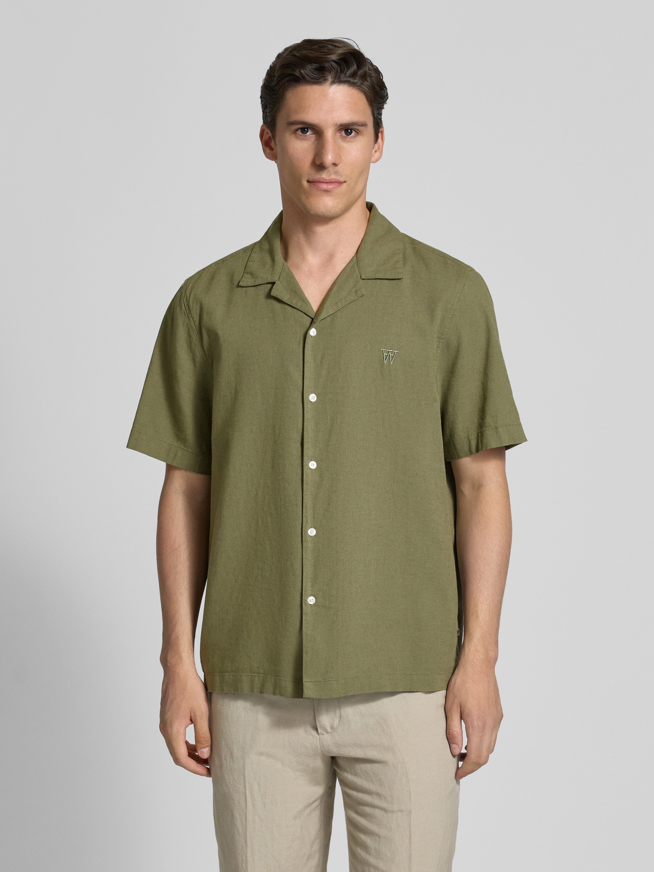 Wood WoodRegular Fit Leinenhemd mit Resortkragen Modell 'aaron' in oliv