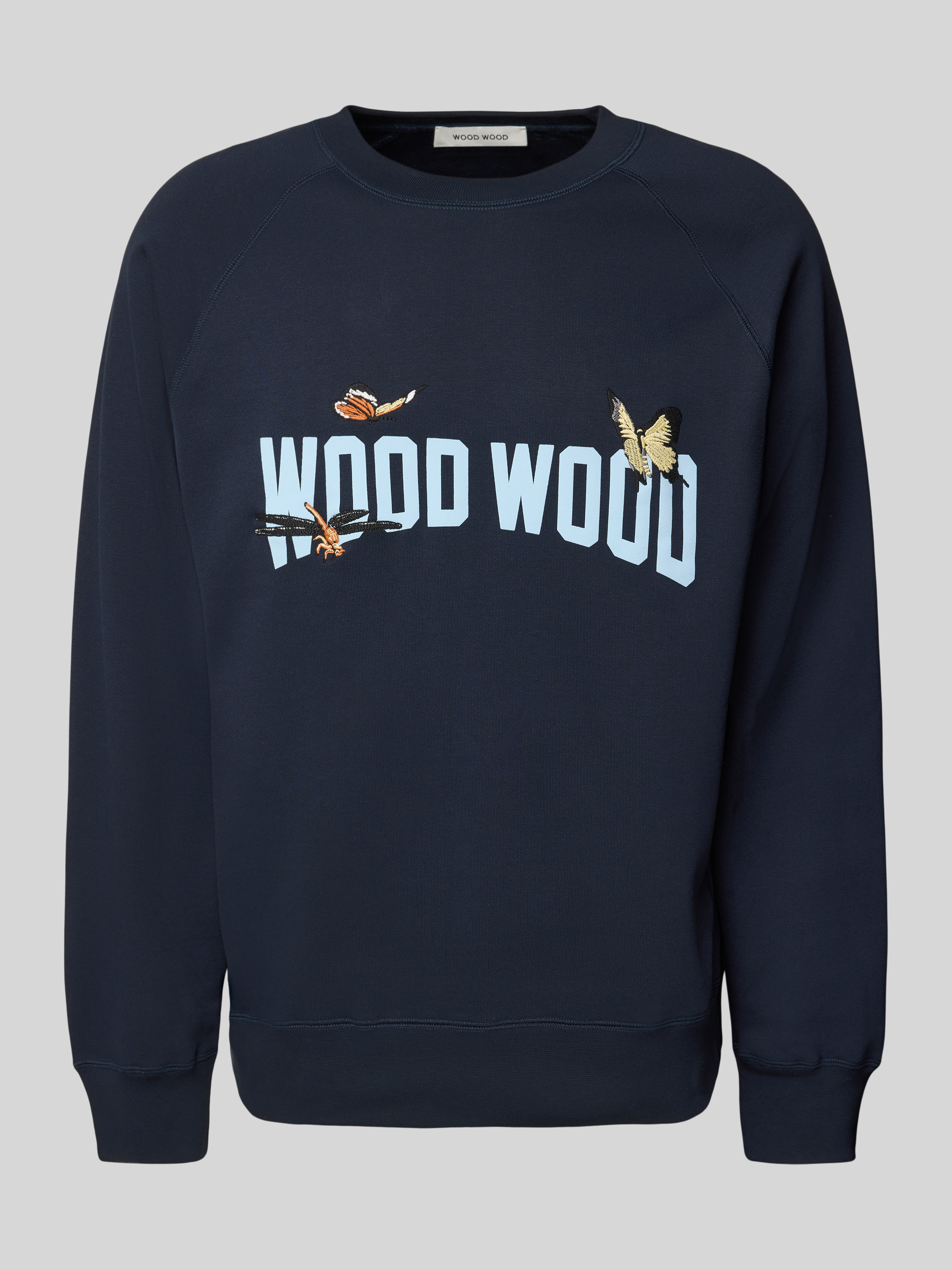 • Wood Wood Sweatshirt mit Motiv-Stitching Modell 'Hester' Dunkelblau
