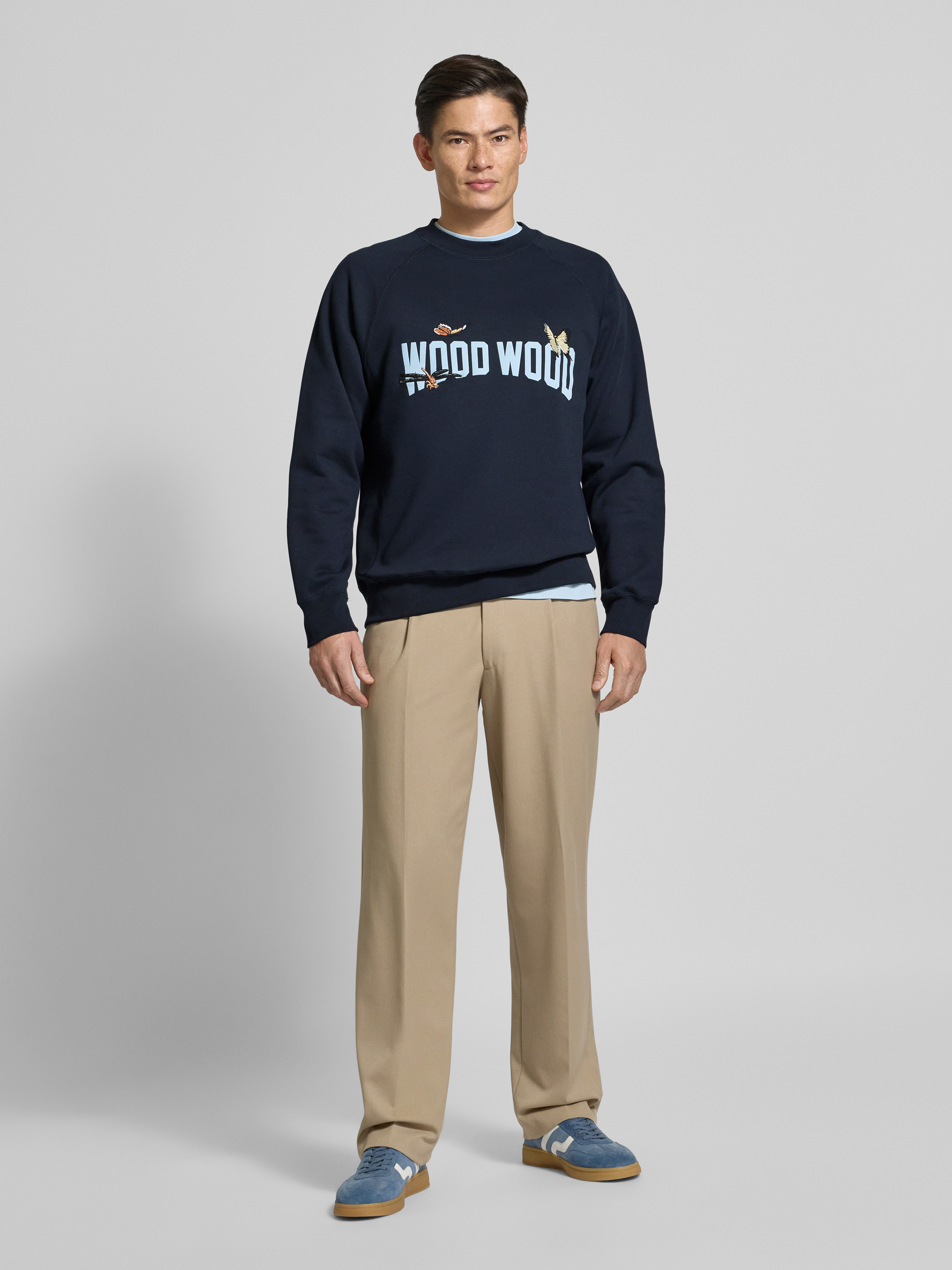 Wood WoodSweatshirt mit Motiv-Stitching Modell 'Hester' in dunkelblau
