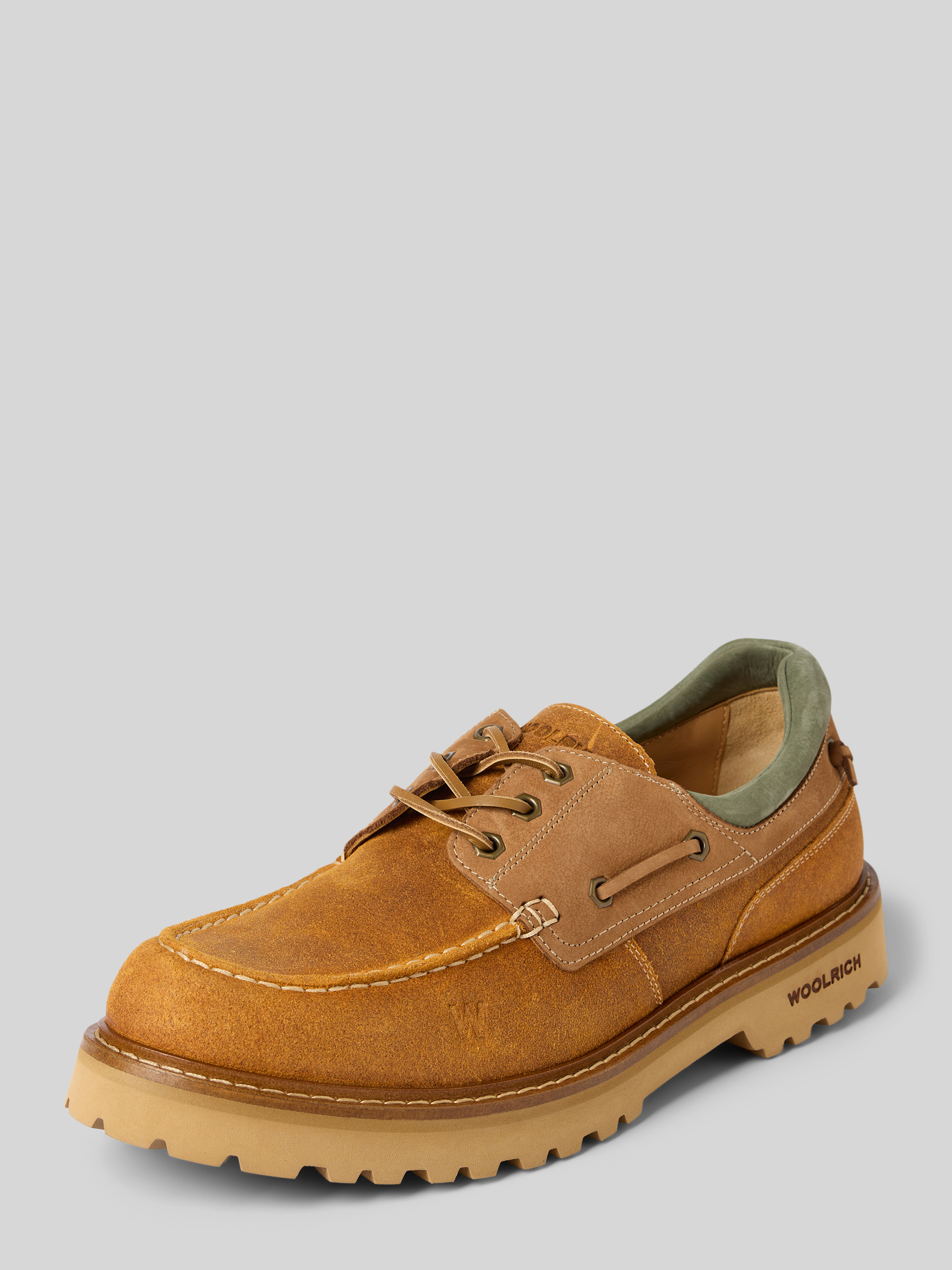 Die Herren Bootsschuhe von Woolrich verbinden echtes Leder mit einer angenehm abgerundeten Spitze, wodurch sich ein komfortables Tragegefühl im Alltag ergibt. Durch die profilierte Sohle erhält man festen Halt, auch auf unterschiedlichen Untergründen. Dezente Label-Details runden das zurückhaltende Design stimmig ab.