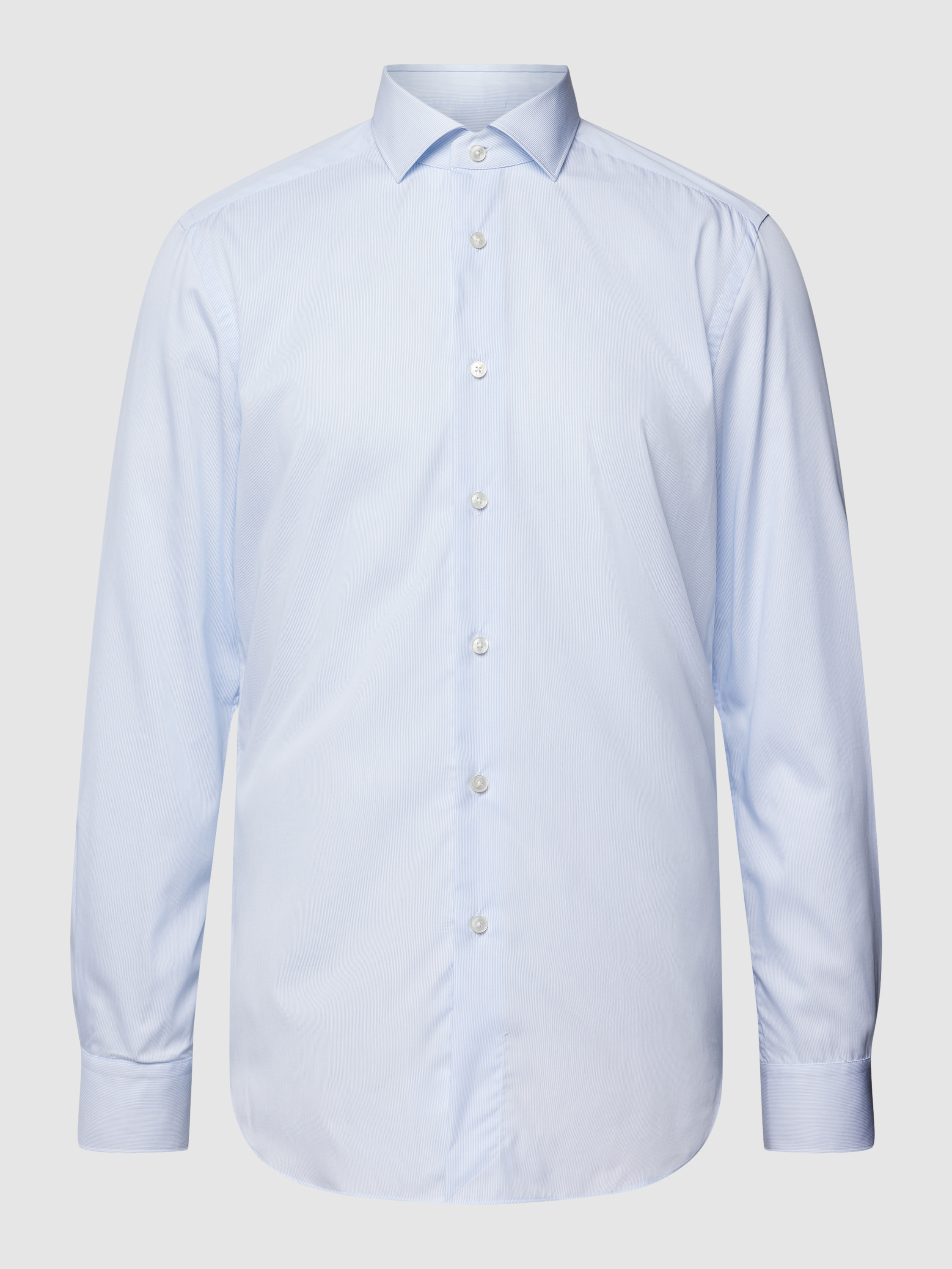 Das Business-Hemd von Xacus ist aus reiner Baumwolle gefertigt und im Slim Fit gehalten. Es kommt mit Kentkragen, durchgehender Knopfleiste und Sportmanschetten.